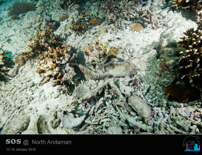 แต่ภาพที่ผมชอบดูและอยากเห็นมากที่สุดคือ ภาพแบบนี้ครับ กำเนิดใหม่ของยุวชนปะการัง ซึ่งก็ได้แต่หวังว่า ในวันข้างหน้า จะกลายเป็นแนวปะการังที่สมบูรณ์แข็งแรงเหมือนในอดีต และหวังว่าคงจะไม่มีอะไรไปทำลายให้พวกเขาต้องเสียอนาคตไปเสียก่อน เช่นเดียวกับหอยมือเสือ Tridacna squamosa จิ๋วขนาดประมาณ 5 ซม.ตัวเดียวที่พบนี้ ก็หวังว่าคงจะอยู่รอดจนกลายเป็นหอยยักษ์ เหมือนบรรดาพ่อพันธุ์แม่พันธุ์ที่มีให้เห็นอยู่ในบริเวณนี้
