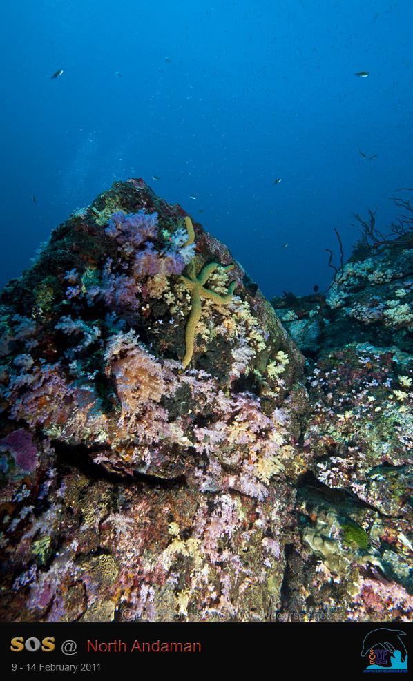ค่อยดีใจหน่อย ที่ปะการังโขดที่หมือนเห็ดยักษ์ ที่สองสายชื่นชอบ ยังอยู่รอดปลอดภัย ใต้ปีกเห็ดมีปะการังอ่อนสีชมพูหวานแหววขึ้นอยู่เต็ม รอบๆปะการังโขด มีปลาตัวเล็กตัวน้อยว่ายอยู่หนาแน่น...