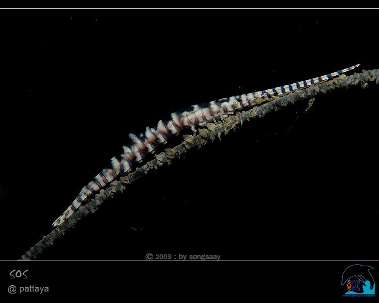 ท้องลายเชียว ..... แถมยังกอดรัดกิ่งของแส้ทะเลไว้แน่น
