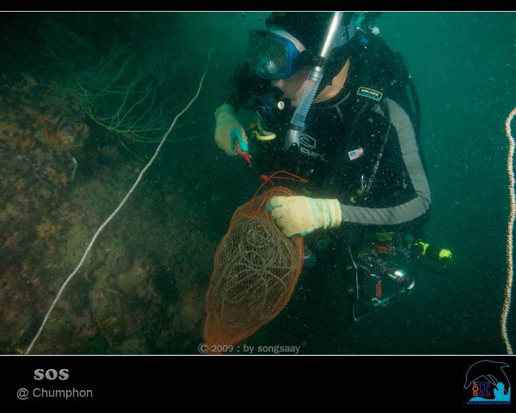 เราต้องลงดำน้ำที่นี่กันสองไดฟ์ และช่วยกันตัดอวนเท่าที่เวลาและอากาศจะมีให้ใช้....