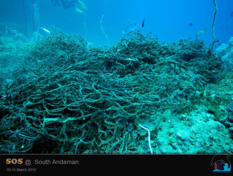 ผลสุดท้ายก็ตะกายกันเข้าไปบนจึงแนวปะการังของเกาะจนได้ มีพวกเศษอวนที่ถูกตัดทิ้งไว้แล้ว เป็นหย่อมๆ