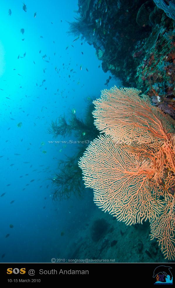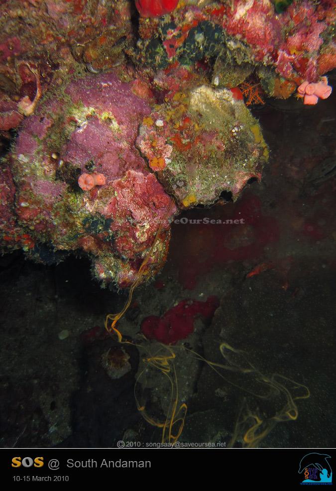 ตอนแรกๆน้ำก็ดูใสดี แต่สักพักน้ำเริ่มขุ่นๆมัวๆ โดยไม่มี Thermocline สังเกตดีๆจึงพบว่า บรรดาหอยทั้งหลายกำลังปล่อยน้ำเชื้อปล่อยไข่ออกมาเป็นสาย เพื่อผสมพันธุ์กัน จนทำให้น้ำในบริเวณนั้นเริ่มขุ่นมัวขึ้นมาทันตาเห็น สองสายเคยพบเหตุการณ์แบบนี้ครั้งหนึ่งที่หินม่วงเมื่อหลายปีมาแล้ว พวกปลิงขาวทุกตัวแถวนั้น ยืดตัวชูหัวขึ้นด้านบน พร้อมปล่อยน้ำเชื้อออกมาเป็นสาย ผสมโรงด้วยพวกหอยสารพัดชนิด ก็ทำเช่นเดียวกัน จนน้ำที่ใสแจ๋วเปลี่ยนเป็นขุ่นมัวขึ้นมาในทันที