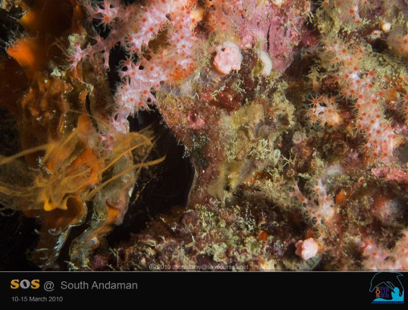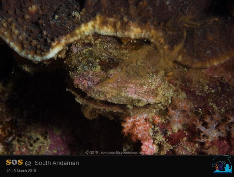 เข้าดงกัลปังหา อดที่จะสอดส่ายสายตาหาของดีดูไม่ได้ ในที่สุดก็เจอเจ้าหอยเบี้ยเทียมที่เอาเนื้อออกมาหุ้มเปลือกเพื่อแปลงตัวจนสีแดงแจ๋เหมือนกัลปังหาที่อาศัยอยู่