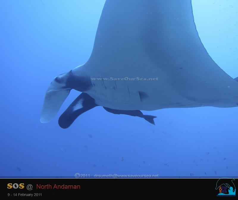 กระเบนราหูตัวนี้ ดูจะสนใจเข้ามาหากินอย่างเดียว ไม่ค่อยสนใจนักดำน้ำที่อยู่กันมากมายในบริเวณเกาะบอนนัก ดูสิคะ....กระเบนราหูเกือบจะว่ายชนน้องติ๊ก ที่ลอยตัวพักน้ำอยู่เฉยๆ.....