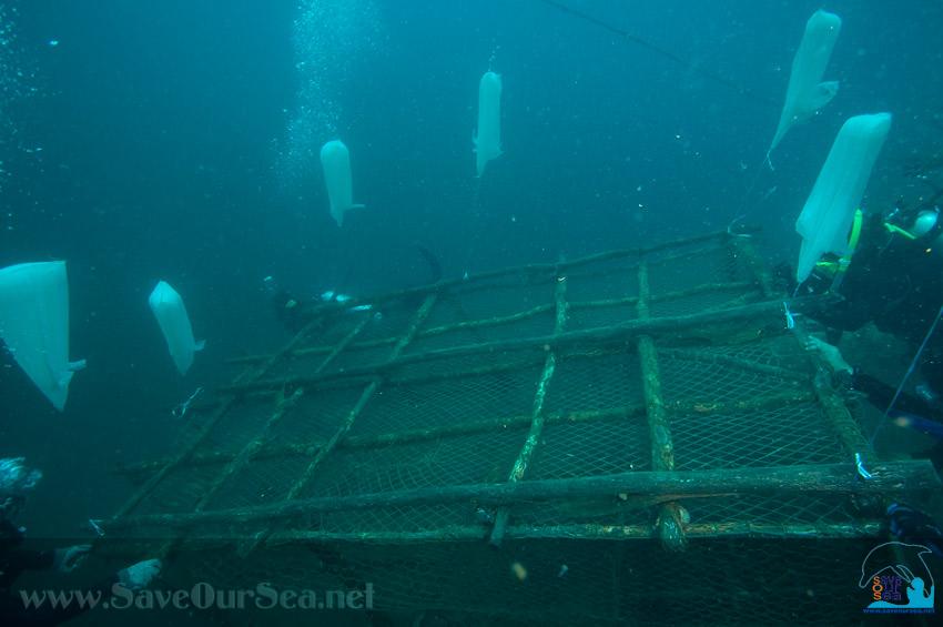เราได้เศษอวน เชือก และตะกั่วถ่วงอวน คิดเป็นน้ำหนักรวม 153 กก. รวมทั้งได้เคลื่อนย้ายลอบเก่าที่อาจครูดทำลายปะการังได้ ออกจากกองหินที่ 50 ฟุต และนำลงไปวางไว้ที่พื้นทรายลึกประมาณ 80 ฟุตอีกด้วยครับ