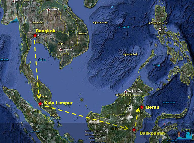จากเมืองเบอเรานั่งรถอีกสองชมไปที่ท่าเรือ Tanjung Batu และสุดท้ายนั่งเรืออีกครึ่งชมไปที่เกาะเดราวัน