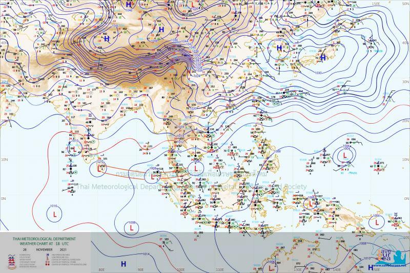 มรสุมตะวันออกเฉียงเหนือกำลังค่อนข้างแรงพัดปกคลุมอ่าวไทยและภาคใต้ ประกอบกับร่องมรสุมพาดผ่านภาคใต้ตอนล่าง โดยในช่วงวันที่ 28 พ.ย. ? 1 ธ.ค. 64 จะมีหย่อมความกดอากาศต่ำกำลังแรงที่ปกคลุมบริเวณทะเลจีนใต้ตอนล่างเคลื่อนเข้าสู่แนวร่องมรสุมที่พาดผ่านบริเวณภาคใต้ตอนล่าง ลักษณะเช่นนี้ทำให้ภาคใต้ยังคงมีฝนฟ้าคะนองเกิดขึ้นได้ และมีฝนตกหนักถึงหนักมากบางพื้นที่ ส่วนมากบริเวณตอนกลางและตอนล่างของภาคใต้ สำหรับคลื่นลมบริเวณอ่าวไทยและทะเลอันดามันจะมีกำลังแรงขึ้นในช่วงวันที่ 28 พ.ย. ? 1 ธ.ค. 64 โดยบริเวณอ่าวไทยมีคลื่นสูง 2-3 เมตร บริเวณที่มีฝนฟ้าคะนองคลื่นสูงมากกว่า 3 เมตร ส่วนบริเวณทะเลอันดามันคลื่นสูงประมาณ 2 เมตร ห่างฝั่งคลื่นสูงมากกว่า 2 เมตร ในช่วงวันที่ 28 ? 30 พ.ย. 64 บริเวณความกดอากาศสูงหรือมวลอากาศเย็นกำลังค่อนข้างแรงจากประเทศจีนยังคงปกคลุมประเทศไทยตอนบนและทะเลจีนใต้ ลักษณะเช่นนี้ทำให้บริเวณดังกล่าวยังคงมีอากาศเย็นถึงหนาวกับมีลมแรง โดยมีฝนเล็กน้อยบางแห่งในภาคตะวันออกเฉียงเหนือ ภาคกลาง และภาคตะวันออก ในช่วงวันที่ 1 ? 4 ธ.ค. 64 บริเวณความกดอากาศสูงหรือมวลอากาศเย็นกำลังค่อนข้างแรงระลอกใหม่อีกระลอกหนึ่งจากประเทศจีนจะแผ่เสริม ลงมาปกคลุมประเทศไทยตอนบนและทะเลจีนใต้ ลักษณะเช่นนี้ทำให้บริเวณดังกล่าวมีอากาศเย็นถึงหนาวกับมีลมแรง โดยภาคตะวันออกเฉียงเหนืออุณหภูมิจะลดลงอีก 4-6 องศาเซลเซียส ส่วนภาคเหนือ ภาคกลาง และภาคตะวันออก อุณหภูมิจะลดลงอีก 2-4 องศาเซลเซียส