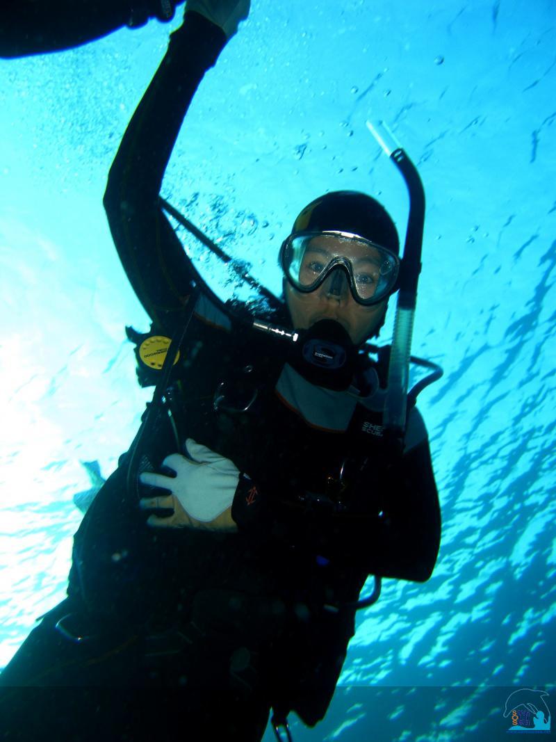 แหงนหน้าขึ้นมามองผิวน้ำ เพื่อทำการ ascend ก็พบว่าป้าปิ๊ดมาลอยชูรักแร้ ทำท่าหอมชื่นใจอยู่ข้างบน...