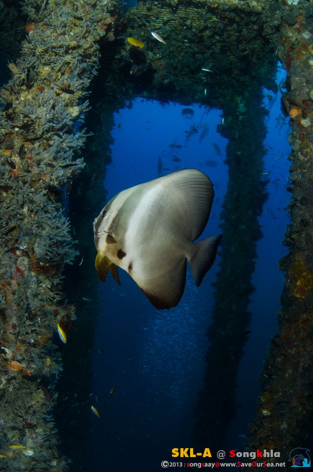หลังจากเสร็จสิ้นกิจกรรมเก็บขยะและตัดอวนที่โลซินของ SOS เมื่อเดือนพฤษภาคม 2556...อาจารย์บอย ศักดิ์อนันต์ ปลาทอง แห่งหน่วยวิจัยปะการังและสัตว์พื้นทะเล ภาควิชาชีววิทยา คณะวิทยาศาสตร์ มหาวิทยาลัยสงขลานครินทร์ ได้ชวนสองสายและน้องแคท ไปดำน้ำสำรวจและถ่ายภาพใต้แท่นผลิตน้ำมัน SKL-A, SKL-C และ SKL-D ของ บริษัท CEC International Co.Lid. ที่ตั้งอยู่กลางทะเลอ่าวไทย ในเขตจังหวัดสงขลา |