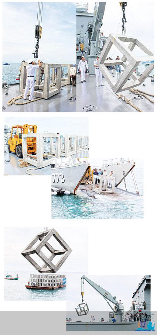 ปะการังเทียม นับเป็นอีกกระบวนการหนึ่งที่จะช่วยเหลือให้สัตว์น้ำและชาวประมงอยู่ร่วมกันได้อย่างยั่งยืนในพื้น ที่หากินของตนเอง.
