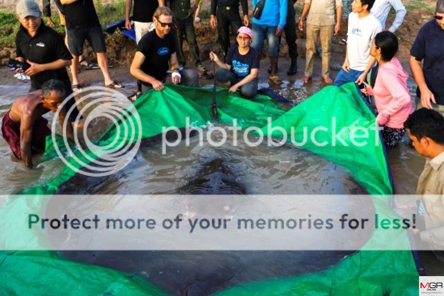 ปลากระเบนราหูน้ำจืดยักษ์ ที่วัดความยาวจากจมูกถึงหางได้ 4 เมตร ถูกจับได้เมื่อสัปดาห์ก่อน และได้ปล่อยกลับคืนสู่ธรรมชาติหลังติดแท็กไว้ที่ตัวปลาเพื่อติดตามพฤติกรรม