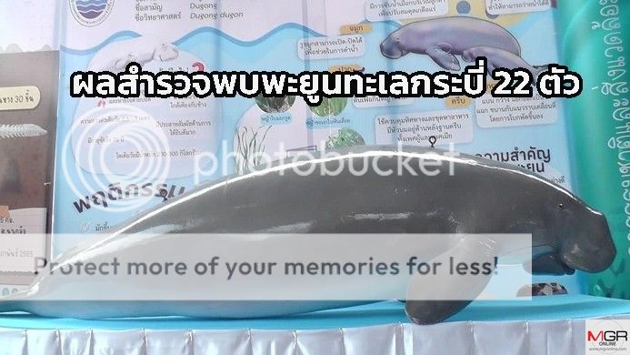 ข้อมูลการสำรวจพะยูนในท้องทะเลกระบี่ ของศูนย์วิจัยทรัพยากรทางทะเลและชายฝั่งทะเลอันดามันตอนล่าง (ศวอล.) ออกปฏิบัติงานสำรวจการแพร่กระจายของสัตว์ทะเลหายาก บริเวณพื้นที่ จ.กระบี่ เมื่อเดือนมีนาคมที่ผ่านมา ผลการสำรวจเบื้องต้นพบพะยูน 22 ตัว (พะยูนคู่แม่-ลูก จำนวน 3 คู่) ผลการตรวจสุขภาพโดยการประเมินสุขภาพจากการสังเกตด้วยสายตา พบว่าพะยูนแสดงพฤติกรรมว่ายน้ำหาอาหารบนแนวหญ้าทะเล และพฤติกรรมการผสมพันธุ์ นอกจากนี้ ยังพบพะยูนคู่แม่-ลูก ซึ่งแสดงถึงความสมบูรณ์เพศของตัวสัตว์ หากินแหล่งหญ้าทะเลบริเวณ เกาะศรีบอยา อำเภอเหนือคลอง จังหวัดกระบี่ ซึ่งจังหวัดกระบี่ มีแหล่งหญ้าขนาดใหญ่กระจายตามพื้นที่ชายฝั่งอำเภอเมืองกระบี่ เหนือคลอง คลองท่อม และเกาะลันตา