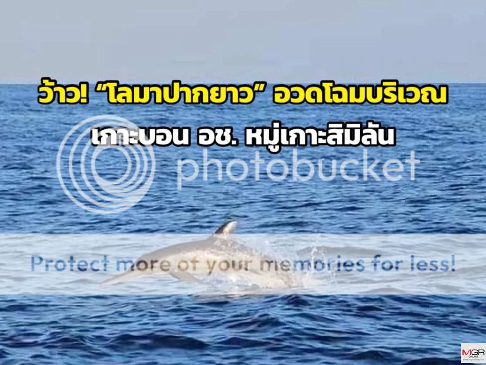 เฟซบุ๊กเพจ "อุทยานแห่งชาติหมู่เกาะสิมิลัน - Mu Ko Similan National park" โพสต์ภาพของ "โลมาปากยาว" ที่ออกมาโชว์ตัวบริเวณเกาะบอน พร้อมให้ข้อมูลว่า