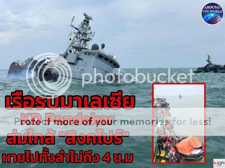 เรือโจมตีเร็วมาเลเซีย KD Pendekar ติดมิสไซล์จมใกล้ "สิงคโปร์" วันอาทิตย์ ชนใต้น้ำ "39 ทหารเรือมาเลย์" ช่วยออกมาได้ปลอดภัย