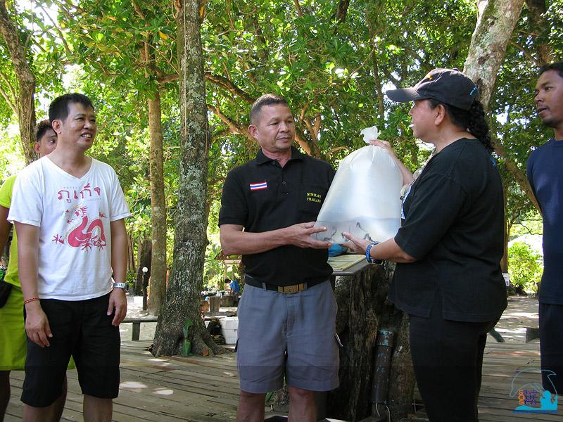 พิธีส่งมอบม้าน้ำและปลาการ์ตูนที่จะนำมาปล่อยให้กับทางอุทยาน