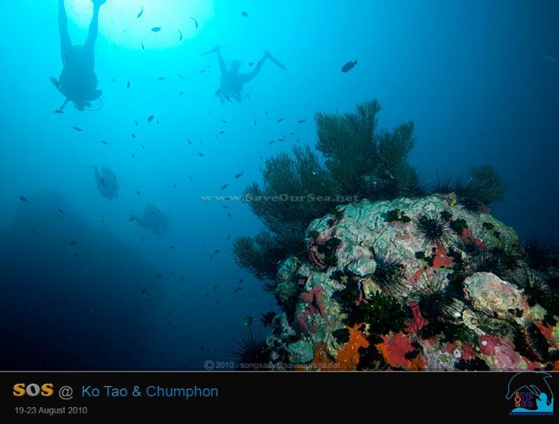 หลังจากที่ชาว sos ไปดำน้ำทำงานที่ทะเลเมืองชุมพรกันในเดือนมิถุนายน 2553 แล้ว ในระหว่างวันที่ 19 – 23 สิงหาคม ปีนี้ ชาว sos ก็ออกทะเลไปเก็บขยะและตัดอวน กันที่ใต้ทะเลบริเวณเกาะเต่า เกาะร้านเป็ด เกาะร้านไก่ และ เกาะง่ามใหญ่กันอีกครั้งหนึ่ง....