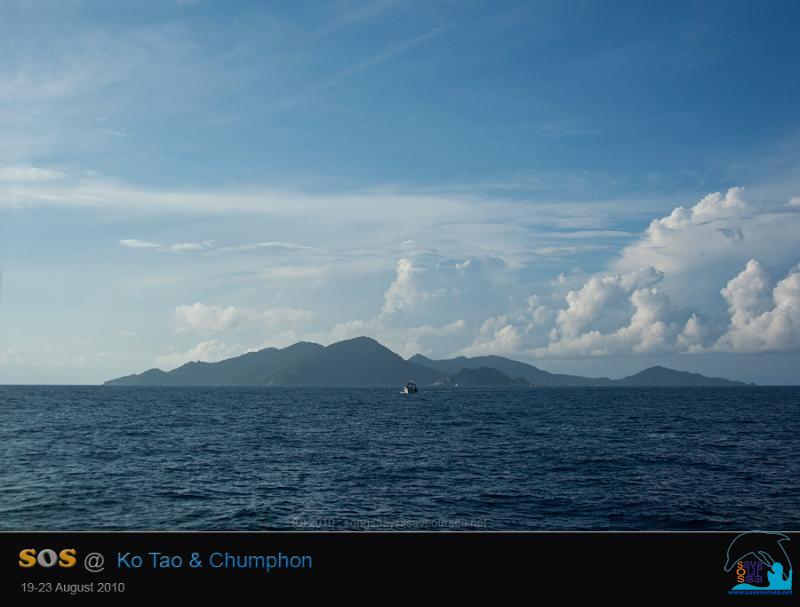 เมื่อถึงวันเดินทาง....ท้องฟ้าที่กรุงเทพฯ แจ่มใสเหมือนหัวใจของเราที่เบิกบนสดชื่น.... วันที่ 18 สิงหาคม ที่ท่าเรือปากน้ำชุมพร...ฝนเพิ่งตกทิ้งเม็ดไปเมื่อตอนเที่ยงวัน จากนั้นแดดก็แผดเปรี้ยงไปจนถึงยามเย็น พวกเราชาว sos ทั้ง 26 คนทยอยลงเรือโชคศุลีที่จอดเทียบท่าคอยอยู่กันอย่างต่อเนื่อง พอถึงตีหนึ่งของวันใหม่ เรือโชคศุลีก็แล่นออกจากท่า มุ่งสู่เกาะเต่า ทะเลราบเรียบเสียจนเรานอนหลับกันอย่างสบายอารมณ์....7 โมงเช้า เรือก็มาลอยอยู่เหนือ กองหินชุมพร ที่อยู่ห่างจากเกาะเต่าทางด้านตะวันตกเฉียงเหนือไม่ไกลนัก เมฆหนาๆก้อนโตๆลอยอยู่เหนือเกาะเต่า ลมอ่อนๆโชยพัดมาจากทิศตะวันออก แทนที่จะเป็นลมใต้หรือลมตะวันตก คลื่นลูกเตี้ยๆอย่างที่เรียกตามภาษาชาวเรือว่า "เดิ่ง" ทำให้เรือโชคศุลีโยกเยกไปมา ไม่ช้าไม่นาน....เรือที่บรรทุกนักดำน้ำจากเกาะเต่าหลายลำ เริ่มแล่นตรงมาที่กองหินชุมพร...