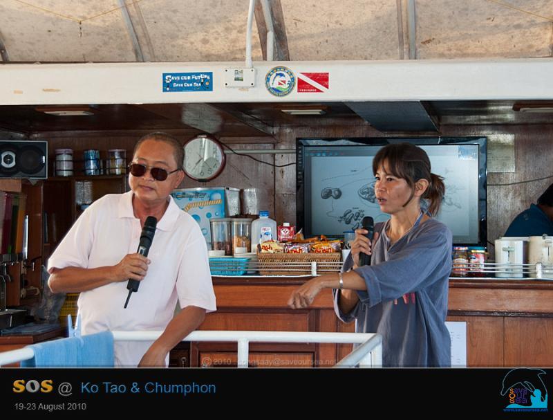 คุณเสรี เจ้าของเรือโชคศุลี ทำการสรุปเรื่องเรือ ส่วนน้องติ่ง SNR สรุปเรื่องแผนการดำน้ำ โดยมีน้องกบ Angel Frog น้องติ๊ก และน้องติ่ง (ชาย) ช่วยสรุปเรื่องการดำน้ำอย่างปลอดภัย....