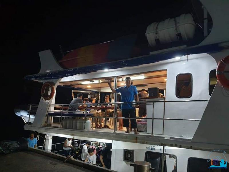 เรือ Vinus Marina...แล่นออกจากท่าเรือทับละมุอย่างแช่มช้าตอนกลางดึก... ท่ามกลางแสงจันทร์คืนแรม 4 ค่ำ... จุดหมายคือภารกิจ "เก็บขยะ ตัดอวน สัมนาวิชาการ" |