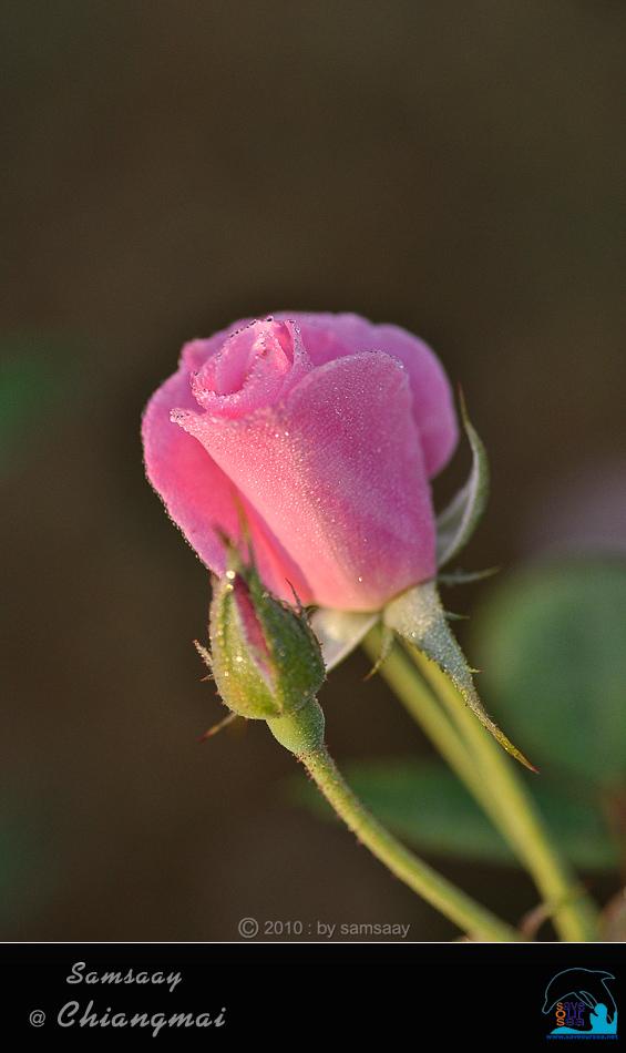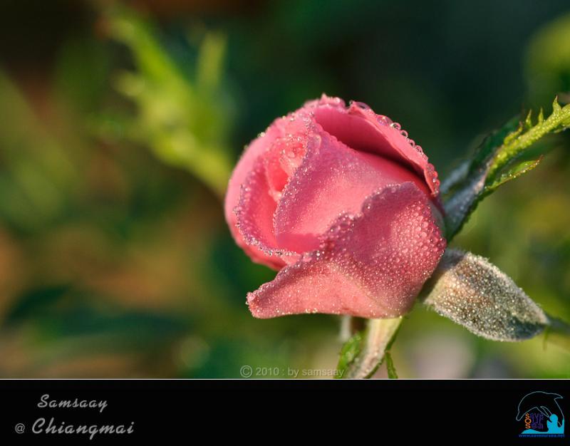 ในยามเช้าช่วงปลายเดือนธันวาคมที่อุณหภูมิลดต่ำกว่า 12 องศาเซลเซียส.....หยาดน้ำค้างที่ดูเหมือนหยาดเพชรประดับประดาอยู่บนกลีบและใบกุหลาบนั้น ช่างก่อให้เกิดภาพที่สวยงามและน่าหลงใหลยิ่งนัก.....