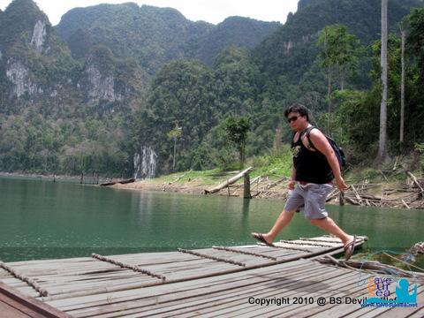 จุดหมายแรกที่เราไป คือการไปเที่ยวที่ถ้ำปะการัง ซึ่งอยู่เกือบทางด้านต้นน้ำของเขื่อน เราต้องเดินเท้า อีกประมาณ 1 กม. ก่อนที่จะข้ามแพเครื่องไปที่ถ้ำ