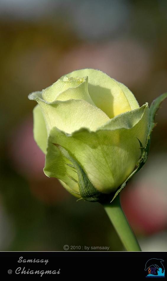 ในยามเช้าช่วงปลายเดือนธันวาคมที่อุณหภูมิลดต่ำกว่า 12 องศาเซลเซียส.....หยาดน้ำค้างที่ดูเหมือนหยาดเพชรประดับประดาอยู่บนกลีบและใบกุหลาบนั้น ช่างก่อให้เกิดภาพที่สวยงามและน่าหลงใหลยิ่งนัก.....