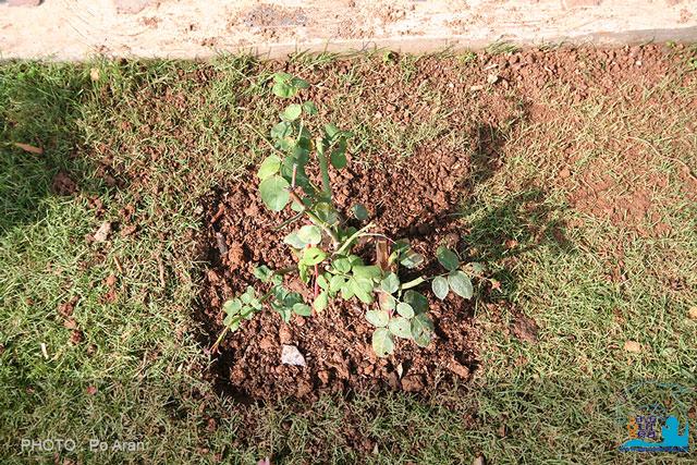 ขุดหลุม กว้าง ยาว ลึก ขนาดหนึ่งฟุต ผสม ดิน 1 ส่วน ปุ๋ยคอก 1 ส่วน แกลบ 1 ส่วน ขี้เลื่อย 1 ใส่ลงไปในหลุม หน้าบ้านอยู่ทิศตะวันออก ตะวันส่องแสงโดนทุกต้น ส่วนตอนบ่ายก็คงโดนบ้านบังแสง ส่วนกุหลาบก็ไม่ทราบพันธุ์อะไรเหมือนกัน เดิมอยู่ในกระถางใบใหญ่รวมกัน ห้าต้น ในหนึ่งกระถาง มีสีเหลือง แดง ชมพู รวมกัน ไม่เห็นเคยทะเลาะกันสักที |