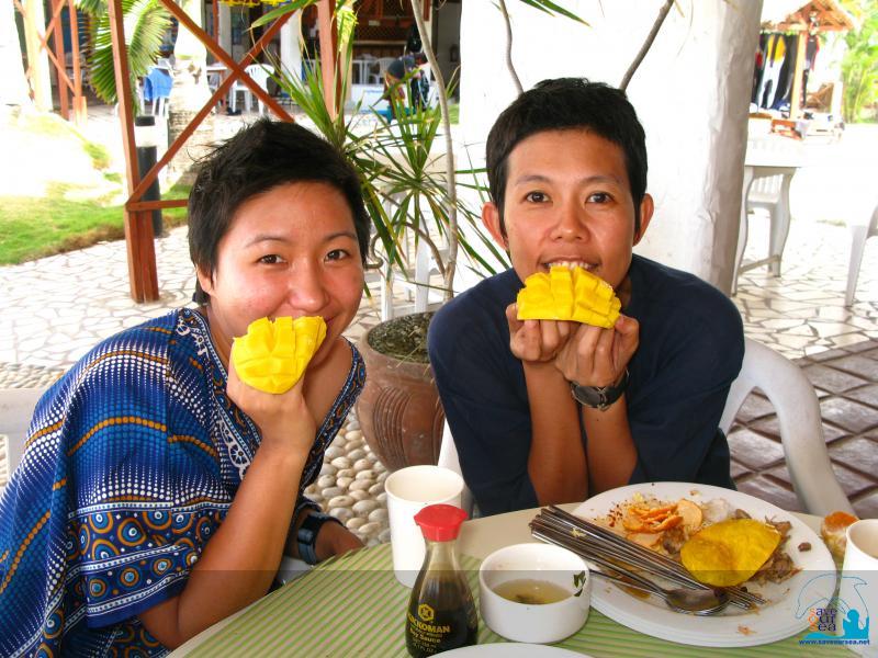 ยังไม่จบนะจ๊ะ.. ก็มาขึ้นบกกันซักนิ๊ด.. มะม่วงที่เห็นนี่ มาจากสองแหล่งค่ะ วันนี้ในจานลูกใหญ่ ปอกไว้สไตล์ฟิลิปปินส์ เป็นมะม่วงที่ซื้อมาค่ะ ที่รีสอร์ท รู้สึกจะลูกละห้าสิบ เดินไปข้างนอก พี่ ๆ ซื้อมากัน โลละ 60 สมควรเดินไปซื้อข้างนอกอย่างแรง...