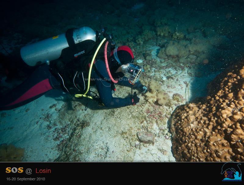 สายเอ็นขนาดใหญ่และยาวเส้นนี้ เกี่ยวพันปะการังเป็นแนวยาวพอดู ..... หลังจากสองสายพบและเก็บภาพไปชั่วครู่ มือขยันก็มารุมเก็บกันเพียงแป๊บเดียวก็หมดเกลี้ยง