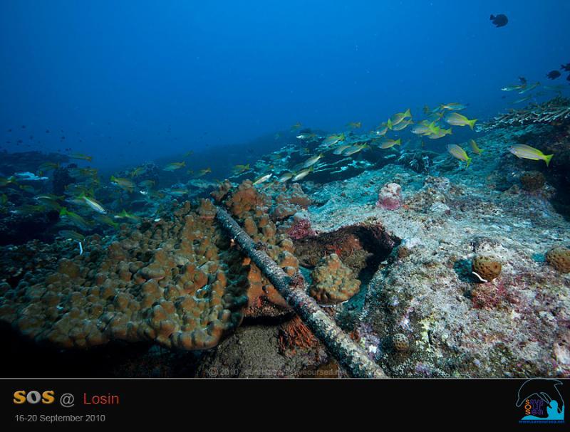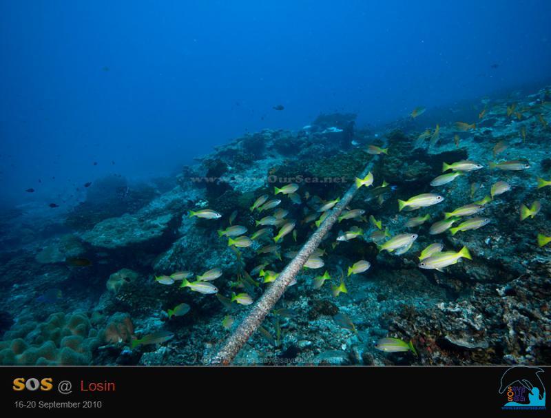 ......... และ เศษอวนเล็กๆ เชือกอวน และเอ็นเบ็ดตกปลา ที่เกี่ยวพันอยู่กับปะการังเท่านั้น