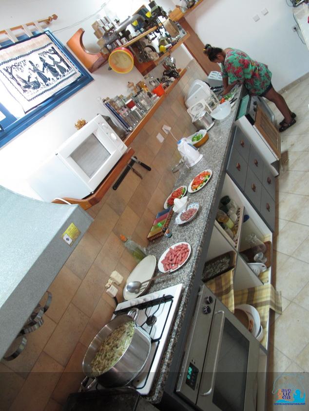 ห้องอาหารแปลว่า ครัวและที่ทำอาหาร เป็นที่ส่วนกลางที่ให้ทุกคนมาทำกับข้าวและนั่งทานข้าวกันเอง เราต้องซื้ออาหารสดมาทำกินกันเอง แช่ตู้เย็นส่วนกลางทำเสร็จก็ล้างเดี๋ยวมีคนมาใช้ต่อ |