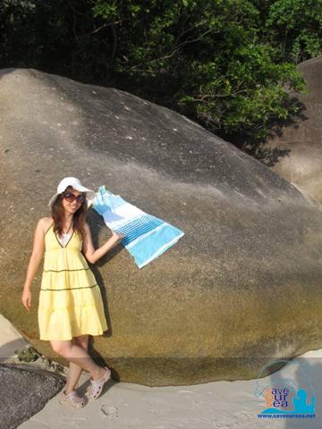 อ้าว... ตอนอยู่บนหินเรือใบใส่สีฟ้า พอลงมาข้างล่างแล้วกลายเป็นสีเหลือง... แอบเปลี่ยนชุดตามพุ่มไม้เหรอะจ๊ะ