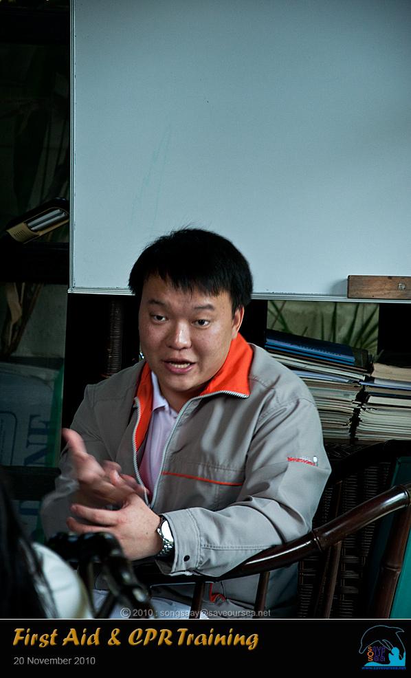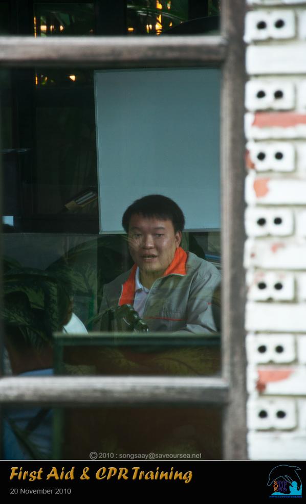 ไม่อยากเปิดกระทู้ใหม่ เลยนำมาไว้ด้วยกัน ... เสร็จสิ้นไปแล้วเช่นกันสำหรับการอบรมการช่วยชีวิตขั้นพื้นฐานและการปฐมพยาบาลเบื้องต้น รุ่นที่ 2 เมื่อวานนี้ ซึ่งมีผู้เข้าร่วมอบรมรวม 12 คน คิดว่า ไม่น่าจะต้องบรรยายอะไรกันมากนัก เพราะอบรมเหมือนครั้งที่ผ่านมา ชมภาพเพื่อซึมซับบรรยากาศกันเลยดีกว่าครับ เริ่มด้วยภาพของ drsumeth ที่กำลังบรรยายอยู่ในห้องเรียน โดยถ่ายผ่านมุ้งลวดและกระจก