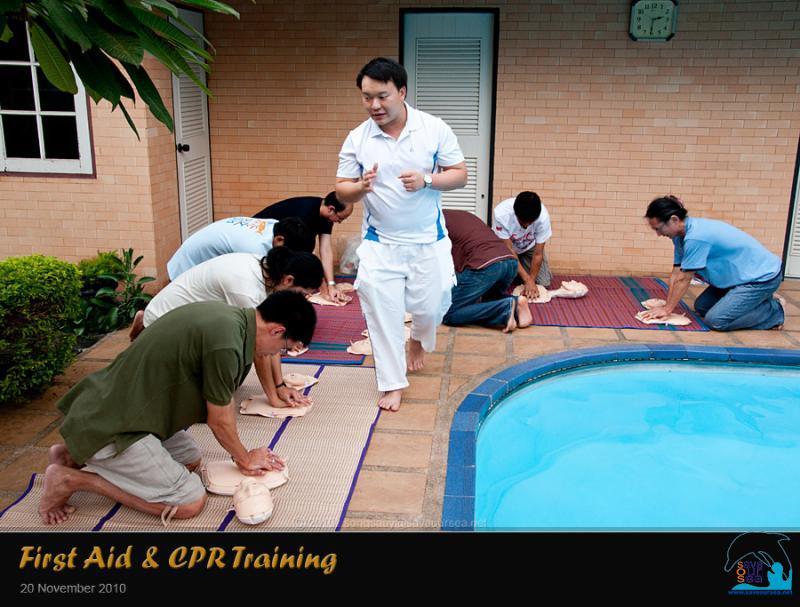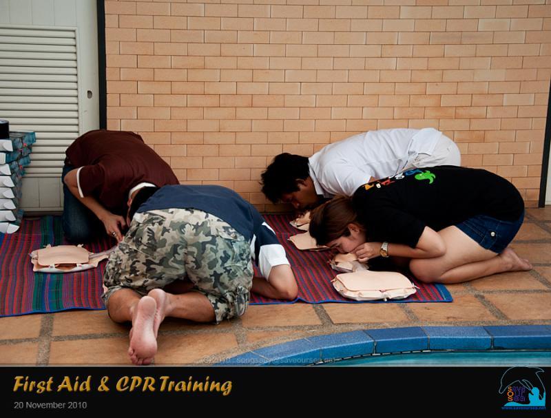 นอกห้องเรียน ก็เหมือนรุ่นก่อน คือ ที่ริมสระจะเป็นการฝึก cpr เริ่มจากการทำความรู้จักกับผู้ช่วยครูคือ พวกหุ่นทั้งหลายก่อน