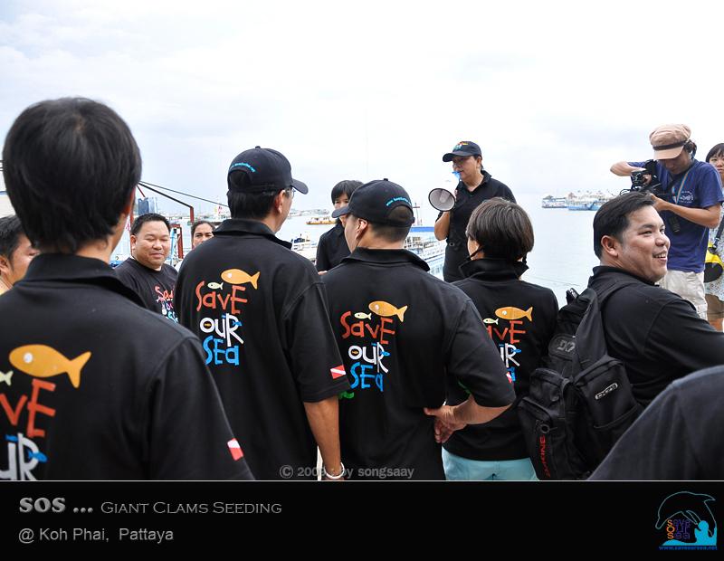 จากนั้น....สายชลพูดเกี่ยวกับเรื่องการดำน้ำทำงาน (ปล่อยหอย....เก็บขยะ....ตัดอวน) อย่างปลอดภัย โดยเน้นเรื่องกฎ กติกา มารยาท และการรักษาระเบียบวินัยในการทำงานร่วมกันเป็นสำคัญ