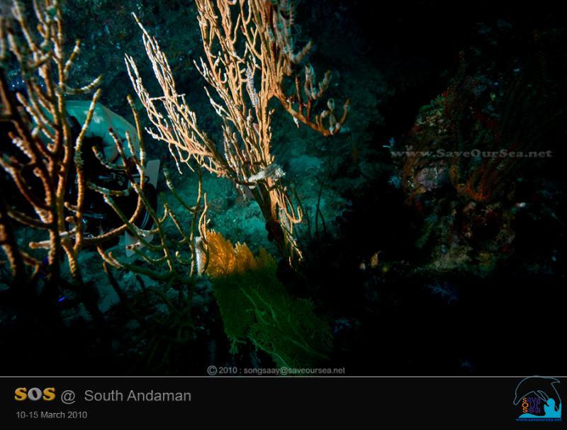 เกาะห้าใหญ่ เป็นจุดที่มีอะไรที่เป็นพุ่มๆอย่าง กัลปังหา ปะการังดำ ปะการังอ่อน ฯลฯ ที่มีกิ่งก้านพอเหมาะให้ม้าน้ำเกาะพักได้หลังถูกปล่อยออกจากแก้วแล้ว