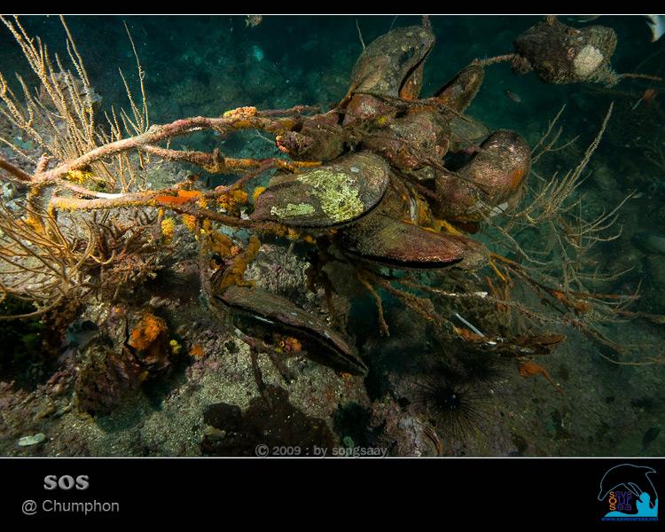 ความหนักของหอยมุก ทำให้กอปะการังล้มครืนลงมาเพราะทานน้ำหนักไม่ไหว....