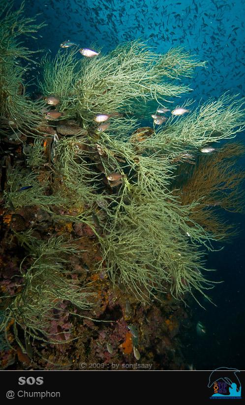 มีอวนติดอยู่ตามกองหินเป็นหย่อมๆ....
