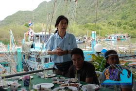 ต่อด้วยพาชมบ่อพ่อแม่พันธุ์ปลานวลจันทร์ทะเล สาธิต/ทดลอง วิธีให้อาหารปลาจากมือโดยคุณตั้ว