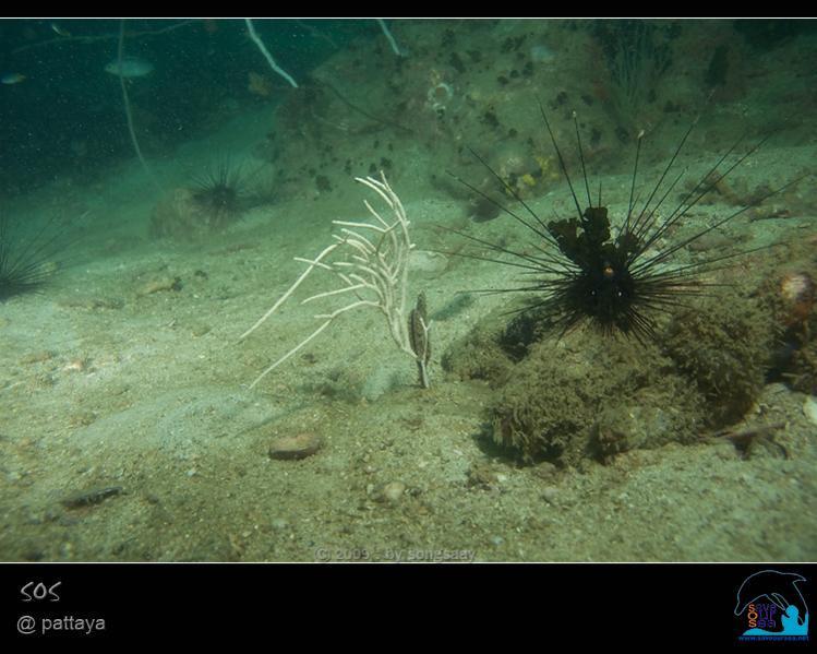 เมื่อเก็บแก้วพลาสติคลงถุงแล้ว คุณสายชลก็เหลือบไปเห็นอะไรเป็นตุ่มๆอยู่บนแส้ทะเล .... เจ้า Xeno Crab นั่นเอง อยู่กันเป็นคู่เลย อ๋อ .... เข้าใจแล้ว ฝรั่งคงเสียบแก้วพลาสติคใบนี้เอาไว้เป็นหมายบอกให้รู้ว่ามี Xeno Crab อยู่ตรงนี้ ..... ช่วยไม่ได้เก็บแล้วเก็บเลย ก็ใครใช้ให้เอาพวก Junk มาทำหมายล่ะ อย่างอื่นมีตั้งเยอะแยะ อย่างเปลือกหอยแตก ฯลฯ