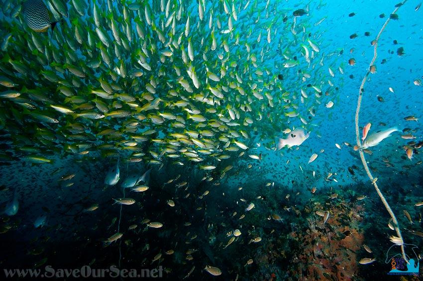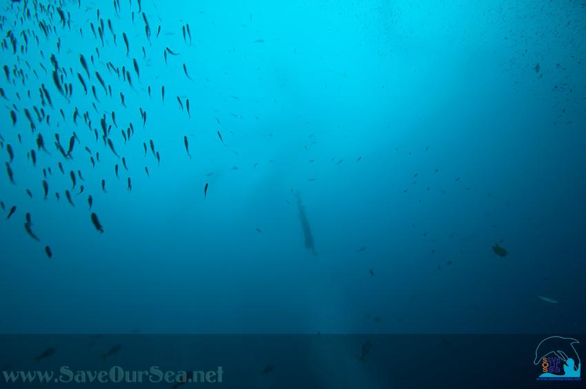 ไดฟ์ที่สอง เราว่ายตรงออกไปทางทิศตะวันออก เพื่อไปยังกองนอกที่เราเคยพบเศษอวนผืนใหญ่เมื่อปีที่ผ่านมา แต่ไม่สามารถเก็บขึ้นมาได้ และต้องตกตะลึงในความหนาแน่นของฝูงปลาเล็กใหญ่ เหนือยอดหินที่ความลึกเกือบ 60 ฟุต