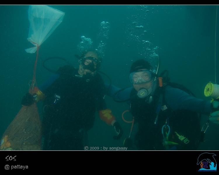 มาต่อให้จบครับ .... เหลืออีกแค่จุดเดียวคือ ใต้สะพานตาแหวง เกาะล้าน Visibility ที่นี่ไม่ต้องห่วงครับ ..... มองจากผิวน้ำดูเหมือนใส พอลงไปลึกสัก 2 เมตร ก็ได้เรื่องแล้ว ก่อนลงได้บรี๊ฟไว้ว่า เก็บขยะที่นี่ ไม่ต้องลงรายละเอียด ขืนเก็บหมด สงสัยเรือมารีนจะจมแน่ๆ ให้เอาแค่ที่พอหยิบฉวยได้ และไม่มีสิ่งมีชีวิตเกาะติด