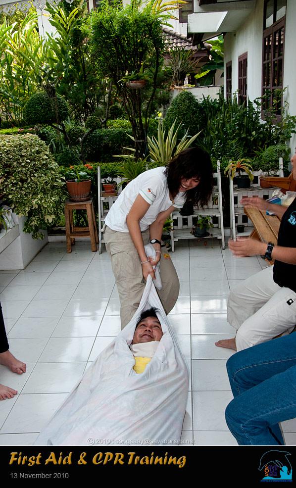 วันของการอบรมการช่วยชีวิตขั้นพื้นฐานและการปฐมพยาบาลเบื้องต้น ในวันเสาร์ที่ 13 พฤศจิกายน 2553 ซึ่งนับเป็นรุ่นแรก ที่มีส่วนผสมของสมาชิก SOS ตั้งแต่วัยกลางคนไปจนถึงวัยขบเผาะ รวม 14 คน โดย drsumeth เลือกให้ใช้บ้านของสองสาย เพราะเห็นว่ามีบริเวณที่พอจะใช้กับภาคปฏิบัติได้ดี