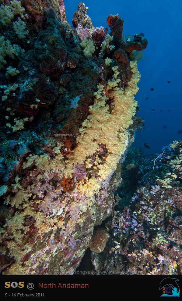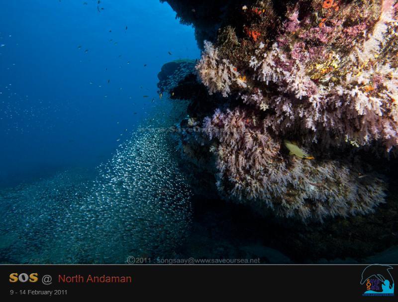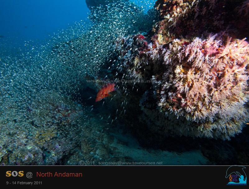 ค่อยดีใจหน่อย ที่ปะการังโขดที่หมือนเห็ดยักษ์ ที่สองสายชื่นชอบ ยังอยู่รอดปลอดภัย ใต้ปีกเห็ดมีปะการังอ่อนสีชมพูหวานแหววขึ้นอยู่เต็ม รอบๆปะการังโขด มีปลาตัวเล็กตัวน้อยว่ายอยู่หนาแน่น...