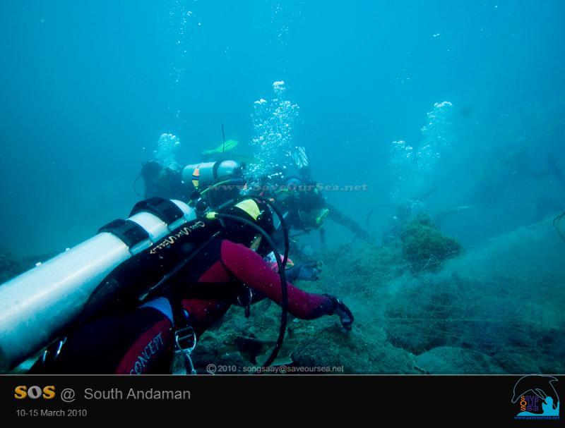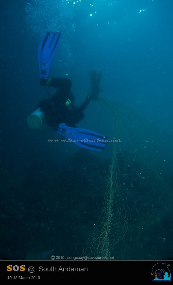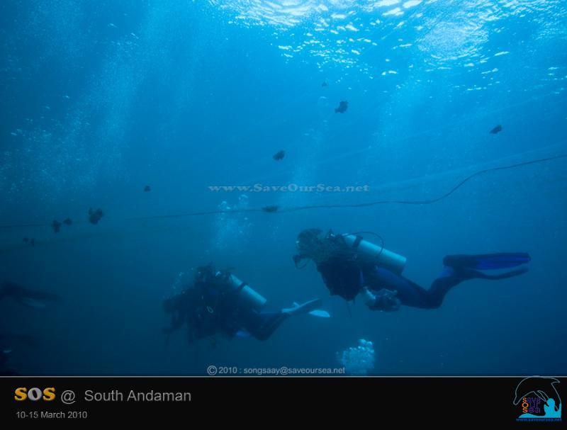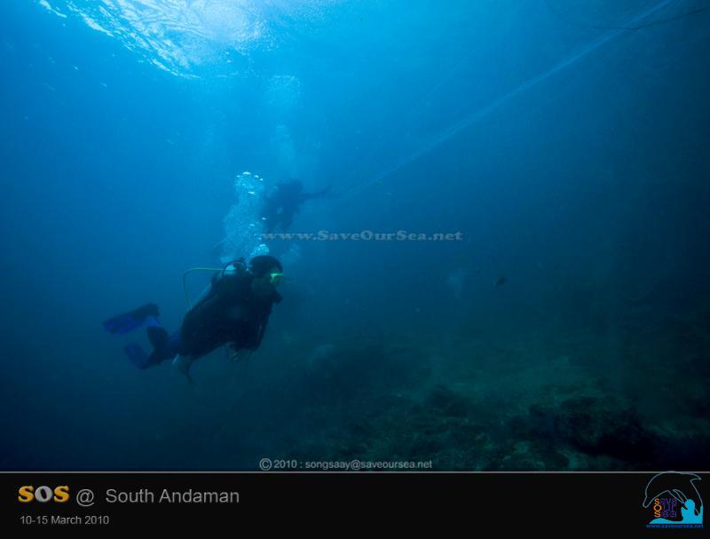 เป็นภาพที่น่าดูจริงๆครับ ..... อวนเยอะและยาวมาก ..... น้ำแรงมาก เรามีเวลาให้เพียง 2 ไดฟ์ การทำงานต้องแข่งกับทั้งเวลา และกระแสน้ำ