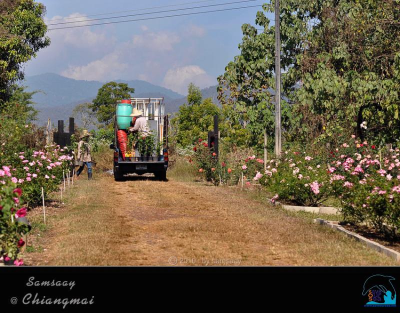 ดอกกุหลาบงามๆละลานตา ถูกนำมาใช้ทั้งก่อนงานเปิด และสำรองไว้เปลี่ยนระหว่างงานดำเนินอยู่นั้นมากมาบหลายหมื่นดอก การถนอมดอกกุหลาบให้อยู่ทนนาน จึงเป็นเรื่องที่ต้องใส่ใจและพิถีพิถันเป็นพิเศษ.... คนจัดดอกกุหลาบปีนี้มีหลายคน งานจึงออกมาสวยและเสร็จได้เร็วกว่าปีที่ผ่านๆมา ส่วนเจ้าพนักงานจากพระตำหนักภูพิงคราชนิเวศน์ ก็มาช่วยงานกันมากหน้าหลายตา เวลาผ่านไปไม่นานงานจัดดอกไม้ในส่วนของพระตำหนักภูพิงคก็สำเร็จเรียบร้อยอย่างสวยงาม....