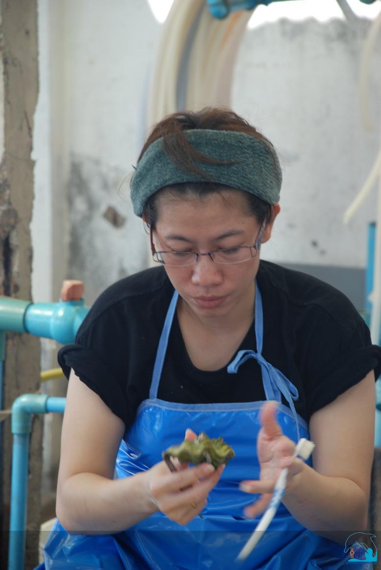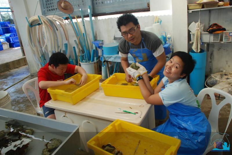 กลุ่มที่ 1 เริ่มจากนำหอยมือเสือมาจากบ่อ ใส่ลงในตะกร้าที่มีน้ำรออยู่ .......ทำความสะอาด ขัดสีฉวีวรรณด้วยแปรงสีฟันนิ่มๆ แคะ+แกะสิ่งไม่พึงประสงค์ออก .......นำไปพักไว้ในบ่ออีกบ่อหนึ่ง ซึ่งไม่ใช่บ่อเดิม สรุปแล้วนั่นคือ.....การอาบน้ำให้หอยมือเสือ(แถมสปาด้วยในบางตัว) นั่นเอง แก้ไขครั้งสุดท้ายโดย ตุ๊กแกผา : 04-03-2010 เมื่อ 15:44 |