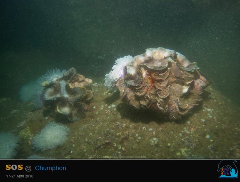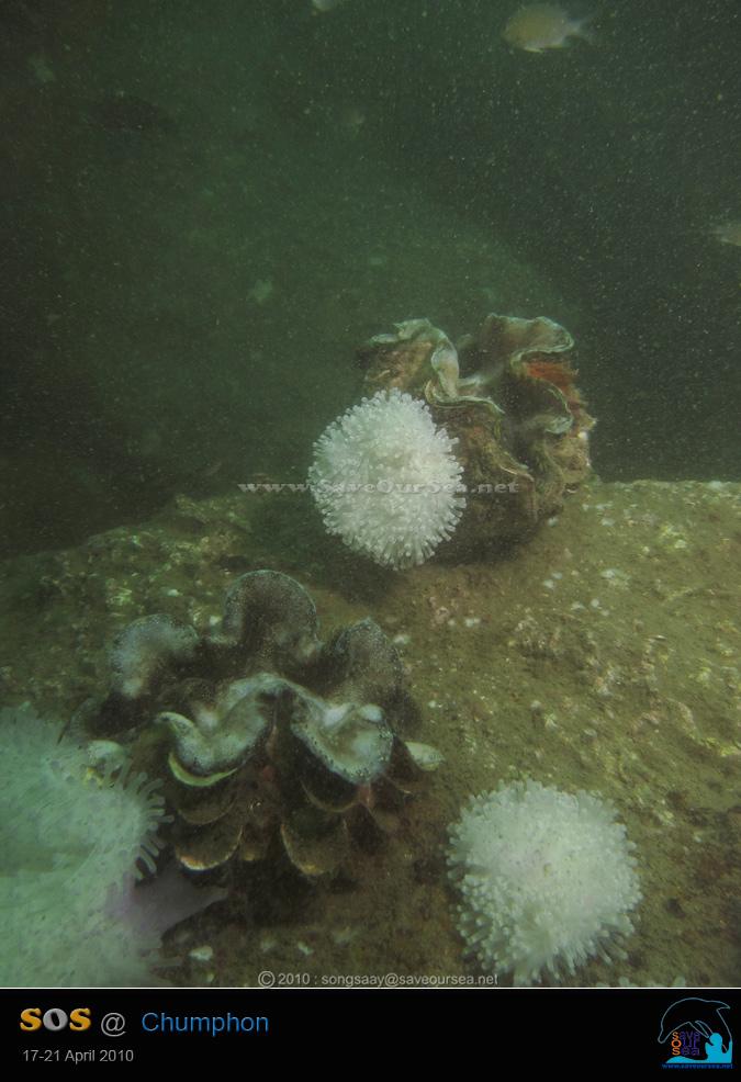 ถึงแม้ว่า ดอกไม้ทะเลที่เกาะอาศัยอยู่บนเปลือกของหอยมือเสือจะออกสีขาวไปแล้ว แต่ใจชื้นขึ้น เมื่อได้เห็นว่า หอยมือเสือหลายๆตัวยังมีสุขภาพดี ถึงจะขาวก็เพียงเล็กน้อยเท่านั้น