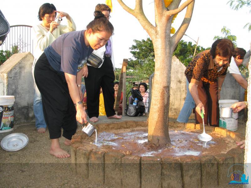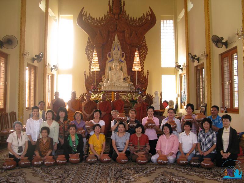 ....จากนั้นเดินทางไปวัดมิตรภาพ-ไทยพม่า เพื่อถวายบาตร 28 ใบ แก่พระอาจารย์โกณฑัญญะและภิกษุสามเณรทั้งวัด รดน้ำและน้ำนมต้นมหาโพธิ์ และถวายสิ่งของต่างๆ