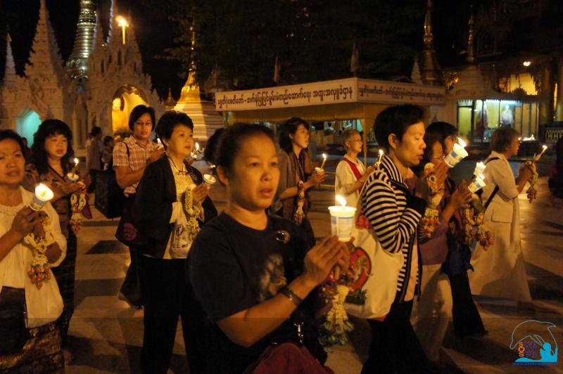 ....ช่วงเย็น...ไปสักการะ พระเจดีย์ชเวดากอง พระมหาเจดีย์คู่บ้านคู่เมืองพม่า ..."ชเว" คือ ทอง ส่วน "ดากอง" คือชื่อเดิมของเมืองย่างกุ้ง สมัยที่พระเจ้าอลองพญาสถาปนาเมืองเล็กริมฝั่งแม่น้ำแห่งนี้ขึ้นเมื่อปี พ.ศ.2298 กล่าวกันว่า "ทอง" แห่งมหาเจดีย์มหาศาลกว่าทองในธนาคารแห่งอังกฤษ ซึ่งน้อยคนปฏิเสธความเป็นไปได้